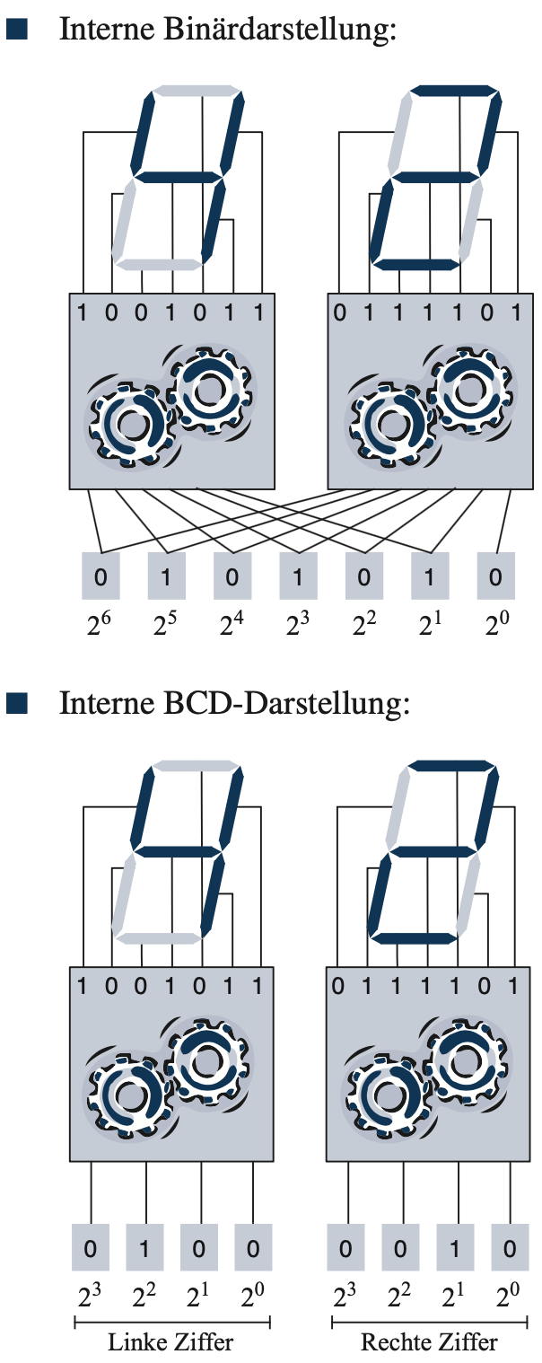 - Hilft dabei die Skalierbarkeit zu erhalten und Rechnungen zu vereinfachen (siehe 7-Segment-Anzeige)